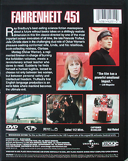 Fahrenheit 451, 1966 (Movie/Video/DVD) Ray Bradburys story of a future where firemen burn books. Pioneering filmmaker Francois Truffaut directed this film and his unique film techniques are still appreciated today by film historians. Some of the special effects show their age however, but the story is clever and worth a look. A real monorail, not a computer graphic, plays the monorail. The SAFEGE test track is our star of the film, and it looks great cruising by in several different scenes of the film.