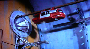 Thunderbirds Are Go! #5 - The Uninvited, 1965 (TV, DVD) One of Gerry Anderson's famous puppets and gizmo series had plenty of futuristic things, many of which we are still waiting for. Monorail shows up several times in the 1965-1966 TV show. In this episode the Zombites have a secret base inside of a Sahara Desert pyramid. Scott Tracy and two archeologists are brought into the deep corners of the facility by the Zombite's suspended monorail, only to escape using the same line minutes later, shooting out the side door as they go. |