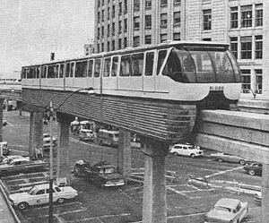 The World of Tomorrow - Alweg Monorail, 1962 (TV) Before Seattles Century 21 Worlds Fair opened, KING-TV broadcasted a series of live updates on the construction progress on the fairgrounds. One episode aired shortly after the Alweg Monorail first started test runs. In one of the more amusing moments, the TV station touted its new creepy peepy camera by bringing it onboard the train for a live broadcast ride, something that was technically difficult to achieve in 1962. I wonder who came up with the name creepy peepy though. The station rebroadcast the series during anniversaries of the fair. |