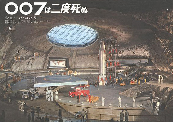 You Only Live Twice, 1967 (Movie/Video/DVD) James Bond (Sean Connery) infiltrates evil Ernst Stavro Blofelds (Donald Pleasence) secret rocket launch facility located inside a dormant volcano. It gets even better. A special near-ground level straddle monorail carries astronauts and assorted bad guys around the interior of the volcano. Being low to the ground, it allows Bond to jump over and grasp the track during the climatic battle to save earth. The two low-capacity monorail cars are made of shiny metal are of two very different body designs. This is one of my favorite film monorails, and was one of the inspirations for building a backyard monorail. I remember hearing one of the stars being interviewed on TV about the film back in 1967. She said the track of the monorail ended just feet beyond the movie set and she was always worried theyd run off the end.