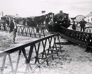 Out of Ireland, 1995 (TV/Video) The Public Broadcasting System (PBS) broadcast this documentary on Irish immigration to the United States. There is some fabulous black and white footage of the Listowel & Ballybunion Railway, including a switch, a drawbridge over the track and on-ride views. Strangely, there is no commentary that even describes what you are looking at! It is obvious though that it is Lartigues steam-powered monorail, which ran from 1888 to 1924. At least its obvious to us. |