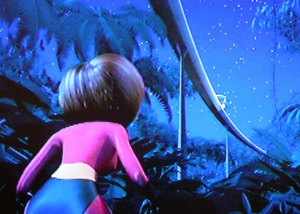 The Incredibles, 2004 (Movie, DVD) This is such a fun film. Great story, characters and computer graphics. The Incredibles features a wonderful Googie-style island headquarters for villain Syndrome. Theres a very cool PRT/pod-like monorail on the so-called Nomanisan Island. Both Mr. Incredible and his wife Elastigirl have unusual rides on it.