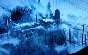 Sky Captain and the World of Tomorrow, 2004 (Movie, Video, DVD) This is a great movie to get a visually stunning, 1939-style view of the future. Lots of flying contraptions and robots; great eye candy. At one point during Sky Captain's quest to find the chief villain, a massive abandoned underground facility is found in the mountains of Nepal. Not visible for long is a monorail track and a couple of abandoned vehicles. No moving trains in this one, just nice artwork.