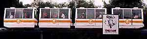 Built by the British firm CPM for $4 million, the Chester Zoo monorail transports visitors between two stations within the park grounds in a loop confinguration. As with other zoo monorails, it affords passengers a good view without disturbing the animal habitats. |