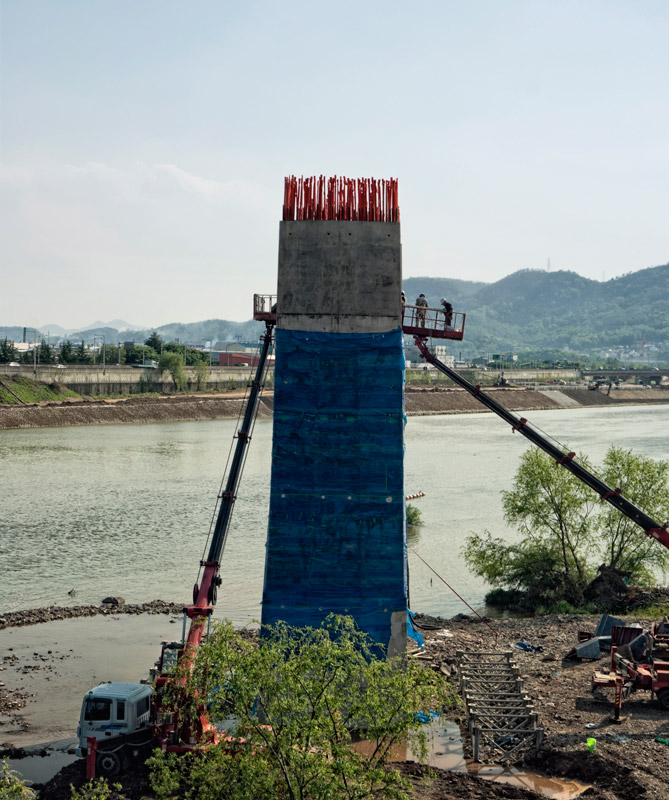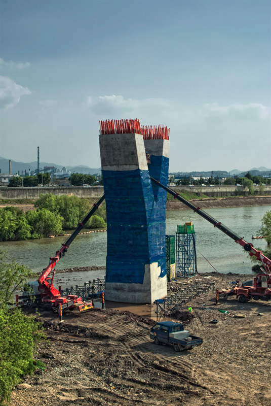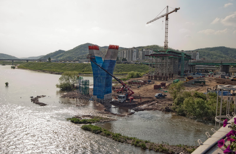 A view of the north support for the bridge across the Geumho-gang, or Geumho River.