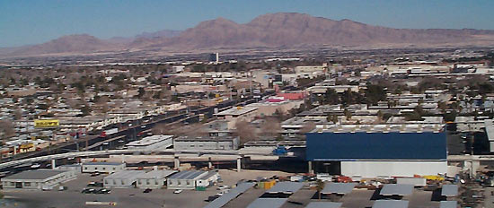 the Las Vegas Hilton and peak out one of its upper windows. Here's