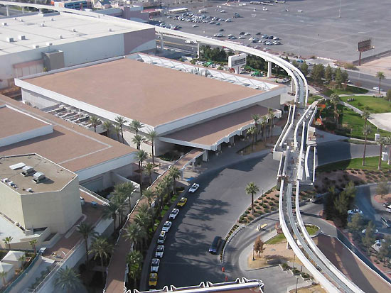 a nice shot looking down on the Las Vegas Hilton Station. Beyond
