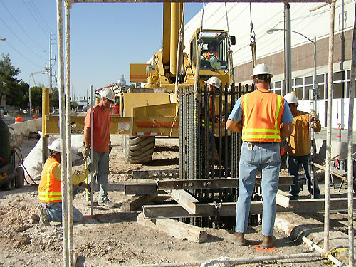 Drill crew sets the last column dowel of Las Vegas Monorail's