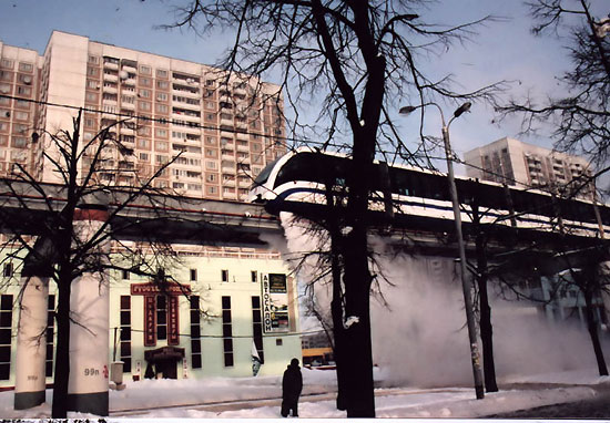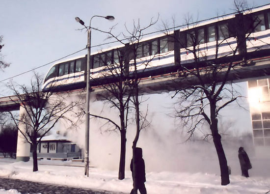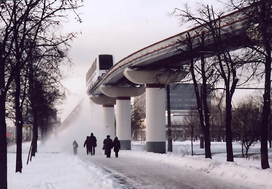 Yes, monorails DO operate in snow. On January 5, 2004, these images