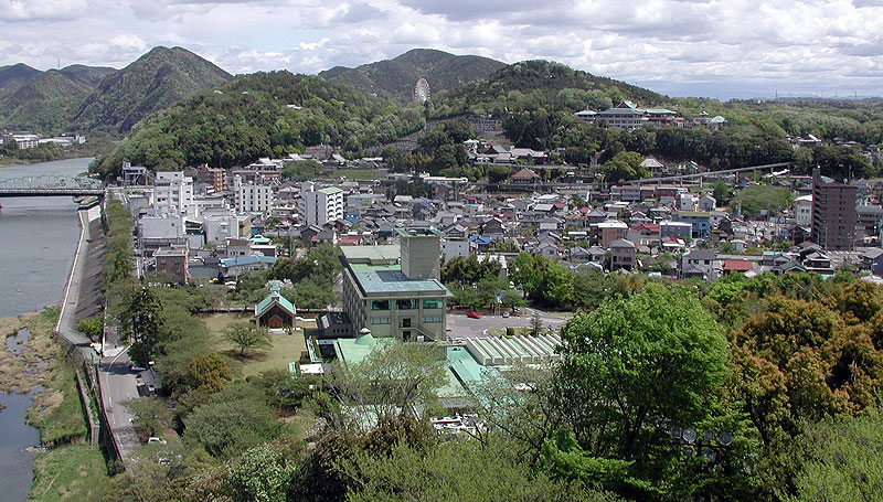 The view from the castle shows the Kiso River on the left, and the hills surrounding the town of Inuyama.