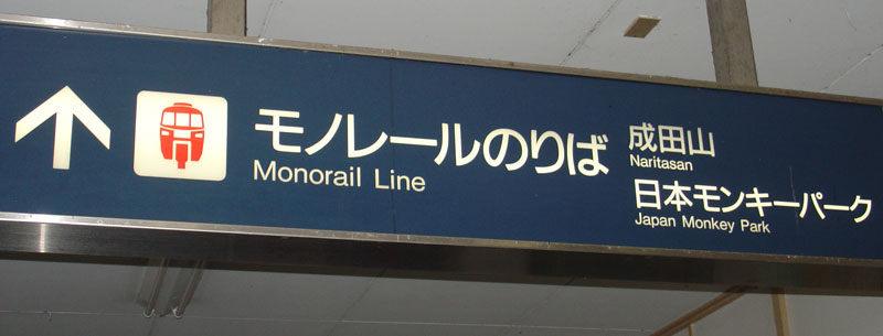 TMS member David Kamada took the following four pictures in the mid-2000s. No problem finding the monorail, as signs not only point you in the direction of the monorail platform, but they also show the destination stations on the monorail line.