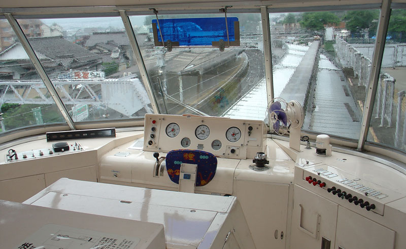 Here's a nice view of the operator's controls looking towards the end of the Inuyama-Yuen Station. (photo by David Kamada)
