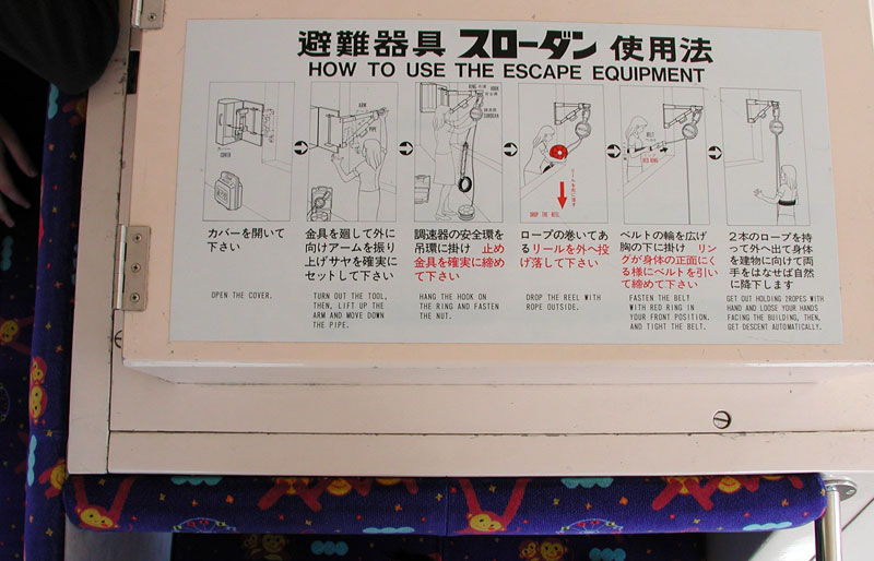 Before we ride to Japan Monkey Park (note upholstery), please review the escape equipment instructions!