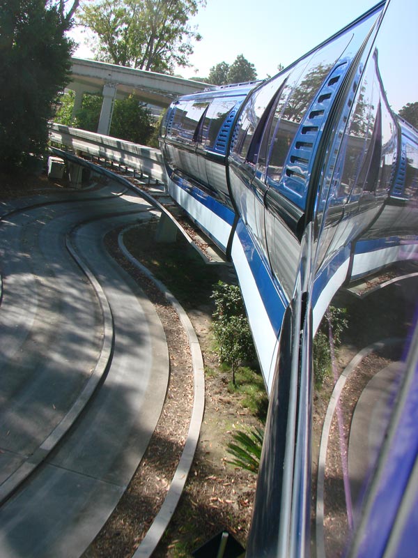 Monorail Red demonstrates the ever-changing tones of its surface as the sun hits it at different angles. James took this from the Tomorrowland Station platform.