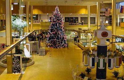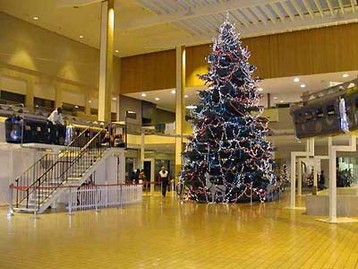 to me from the dimly lit, crowded mall floor, surrounded by many