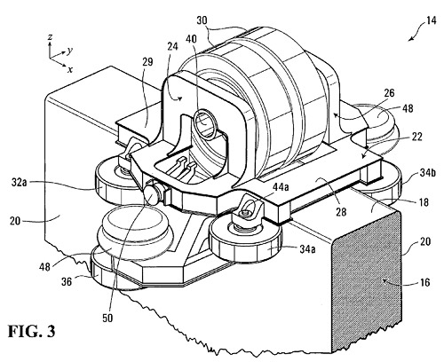 One of the enhancements that Bombardier has made in addition to the walk-through nature of the vehicles is their first use of independent bogies. To accomplish the important walk-through feature, a low profile bogie has been designed that does not require a sizeable raising of the floor level. A 2010 patent filed by Bombardier shows this to look like: