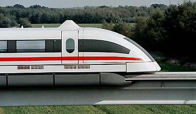 Transrapid is not necessarily more expensive than traditional HSR. Given similar route lengths and terrain, both German High Speed Rail (HSR) and Transrapid routes would have similar levels and types of civil structures. Under such conditions, planning comparisons would favor the construction and operation of a Transrapid route since, with similar investment costs per route mile, Transrapid achieves a significantly shorter travel time than HSR. Transrapid would also be favored in comparable routes since Transrapid has significantly lower maintenance costs than HSR systems (30% lower at least, maybe as much as 50% in rugged terrain) due to its grade-climbing ability, offboard propulsion system and basic non-contact running operation. The technology is very mature. Germany has developed full-scale prototype Maglev vehicles and specialized operation control systems and proven the operational reliability through years of high-speed running on its Emsland/Lathen test track, itself a commercially licensed facility. Transrapid Maglev is the safest, most-tested full-scale Maglev system in the world. It is ready for commercial operation. The three-section TR08 prototype vehicle - designed to the German railway operator's (Deutsche Bahn's) specifications in 1999 - carried 70,000 paying passengers during the four-month World Expo 2000 at the test facility in Emsland, Germany, bringing the total number of passengers carried to date to 330,000 and the total mileage at the facility to more than 450,000 miles. In Germany, a maglev to connect downtown Munich with its airport may be built. In the U.S., FRA embarked on a Maglev Deployment Program (MDP) in 1999 to conduct pre-construction planning for five or six Transrapid Maglev routes around the country. In China, a construction contract was signed in January, 2001 to introduce the Transrapid Maglev into Shanghai city by connecting the international airport with a downtown transit station, a route of about 19 miles with two endpoint stations. The system-featuring everyday running speeds of 270 mph- opened to commercial operation in 2004. Other locations in North America (Canada, Florida, mid-west) and elsewhere are contemplating Transrapid Maglev as a viable means of transport in tomorrow's environment. |
