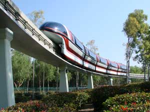 From early on in the planning of Disneyland, Walt Disney envisioned a monorail in Tomorrowland. Walt and Disney park designers were not impressed with several suspended systems they looked at. Legend has it that he and Mrs. Disney happened across the Alweg test facility in Germany by accident and monorail history was made. Disney designers modified the Alweg system and installed a smaller-scale Alweg monorail in 1959. At the time it was the park's most popular and talked about attraction. Millions of TV viewers saw the monorail on Walt's Sunday show and became convinced of its future in transit. In 1961 an extension was added to connect to the nearby Disneyland Hotel. While Disney installed the monorail to promote it as a train of the future, the effect it had was just the opposite. Monorails for many years would be type-cast as amusement park rides. Then there are the believers who remember Walt's early TV shows and still dream of beamways running down major transit corridors in the USA. Train designs have been designated Mark I, Mark II, Mark III, Mark V and Mark VII (Mark IVs and Mark VIs were for Walt Disney World in Florida).