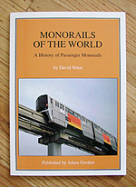 Brora, Scotland. Author David Voice, who has written many tramway and rail-related books, has completed 'Monorails or the World,' a paperback book with many photographs and illustrations (many in color). The book covers monorail history, tracks the growth of transport monorail vs. leisure monorails, features a list of the worlds monorails (with some that are not monorails by our definition) and covers safety with rare photos of various accidents that have occurred. Voice challenges several of The Monorail Society's list of advantages of monorail, but generously gives TMS credit for information gained in the writing of his book. 'Monorails of the World' is available online at Adam Gordon Books.
