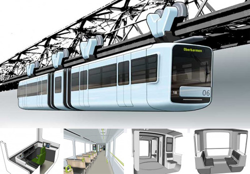 Wuppertal, Germany. After a bevy of good ideas and designs submitted by fans, students and professionals, the Wuppertaler Stadtwerke has revealed a proposed design for new trains. The world-famous Wuppertal Schwebebahn is the longest-operating monorail system in the world. Periodically over 100 years, new trains have been introduced to run along the Wupper River. The latest design is very similar to the current design, but numerous changes are being proposed. Shells will cover the wheels and wheel arms. The driver's window would be slightly angled to improve forward visibility. Seats will feature padding. More space for wheelchairs will be included, and there will be more folding seats, bringing the total per train to 46. The public is being asked for their opinions on the design. Color of the trains will be decided later.