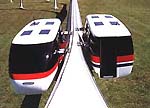 Cincinnati, Ohio. MonoMobile has completed a prototype automobile that can operate on city streets, then transform itself into a suspended monorail vehicle. Called the Liberator, developers hope to obtain funds to build a one-mile test track. While in monorail mode, the Liberator uses electric power to cruise along at up to 100 mph, while at the same time batteries are charged for auto use when it returns to the streets. MonoMobile is similar in scope to the Danish RUF monorail/car proposal, yet RUF uses a straddle-beam monorail instead of a suspended monorail track. Developers of MonoMobile state a Liberator Car system would have many of the benefits of mass transit plus the convenience of the automobile.