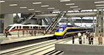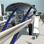 Computer-generated monorail and High Speed Rail at proposed Anaheim multi-modal station
