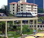 Malacca, Malaysia. A 1.6 kilometer shuttle monorail along the Malacca River has opened. The single track line connects Taman Rempah in Pengkalan Rama to Kampung Bunga Raya Pantai in the central part of the city. One 22-passenger, three car train shuttles back and forth along the winding river. A round trip takes about 30 minutes. There are plans to lengthen the train to six cars.